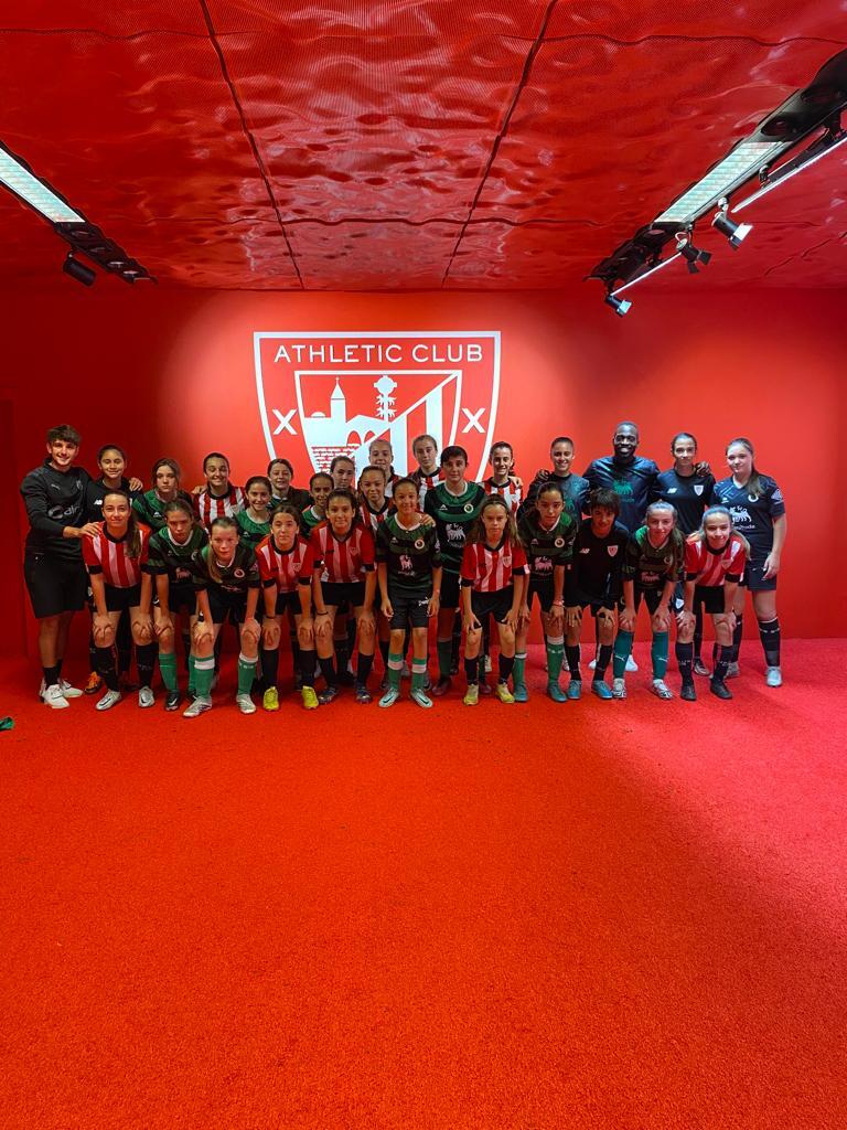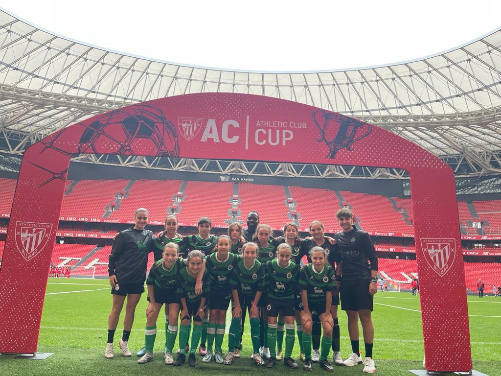 El Infantil Femenino del Racing participó a lo largo del fin de semana en la primera edición de la AC Cup organizada por el Athletic Club. El torneo, celebrado en Bilbao con motivo de la conmemoración del 125 aniversario del conjunto rojiblanco, congregó a más de 320 equipos de cantera y 4.500 jugadores y jugadoras. El viernes por la tarde las infantiles verdiblancas desfilaron en el acto de inauguración celebrado en San Mamés junto al resto de equipos invitados y pudieron disfrutar de espectáculos de baile, luces y sonido así como también de la actuación musical de Twin Melody. Durante el fin de semana las racinguistas, divididas en dos equipos, cuajaron meritorias actuaciones en las distintas sedes de la competición como Errebale, Santo Cristo, Bolue, Lezama y San Mamés. Las cántabras, además, estuvieron acompañadas de jugadoras procedentes de la SD Nueva Montaña y la SD Solares- Medio Cudeyo -dos de los más de cuarenta equipos convenidos con el club-, así como también de varias alumnas de la Academia verdiblanca.